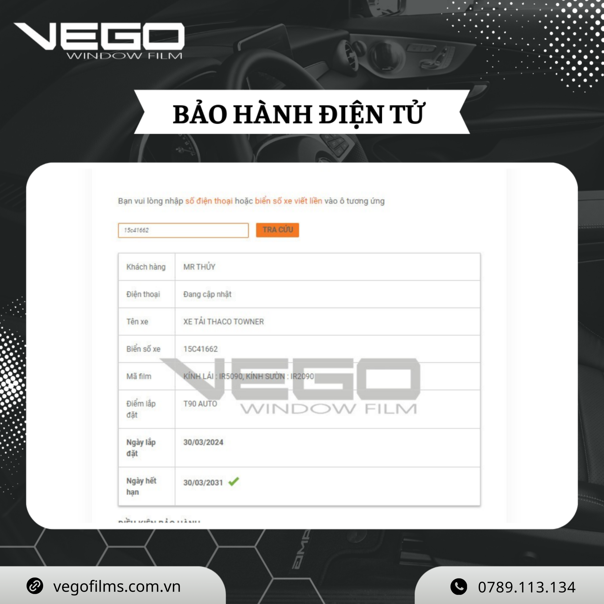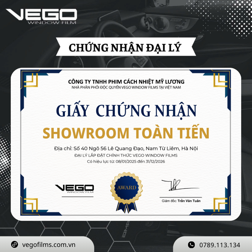 Hãy liên hệ với chúng tôi qua hotline 0789 113 134 để nhanh chóng xác minh sản phẩm chính hãng hoặc kiểm tra Đại Lý Chính Hãng của phim cách nhiệt Vego tại link: https://vegofilms.com.vn/he-thong-dai-ly/