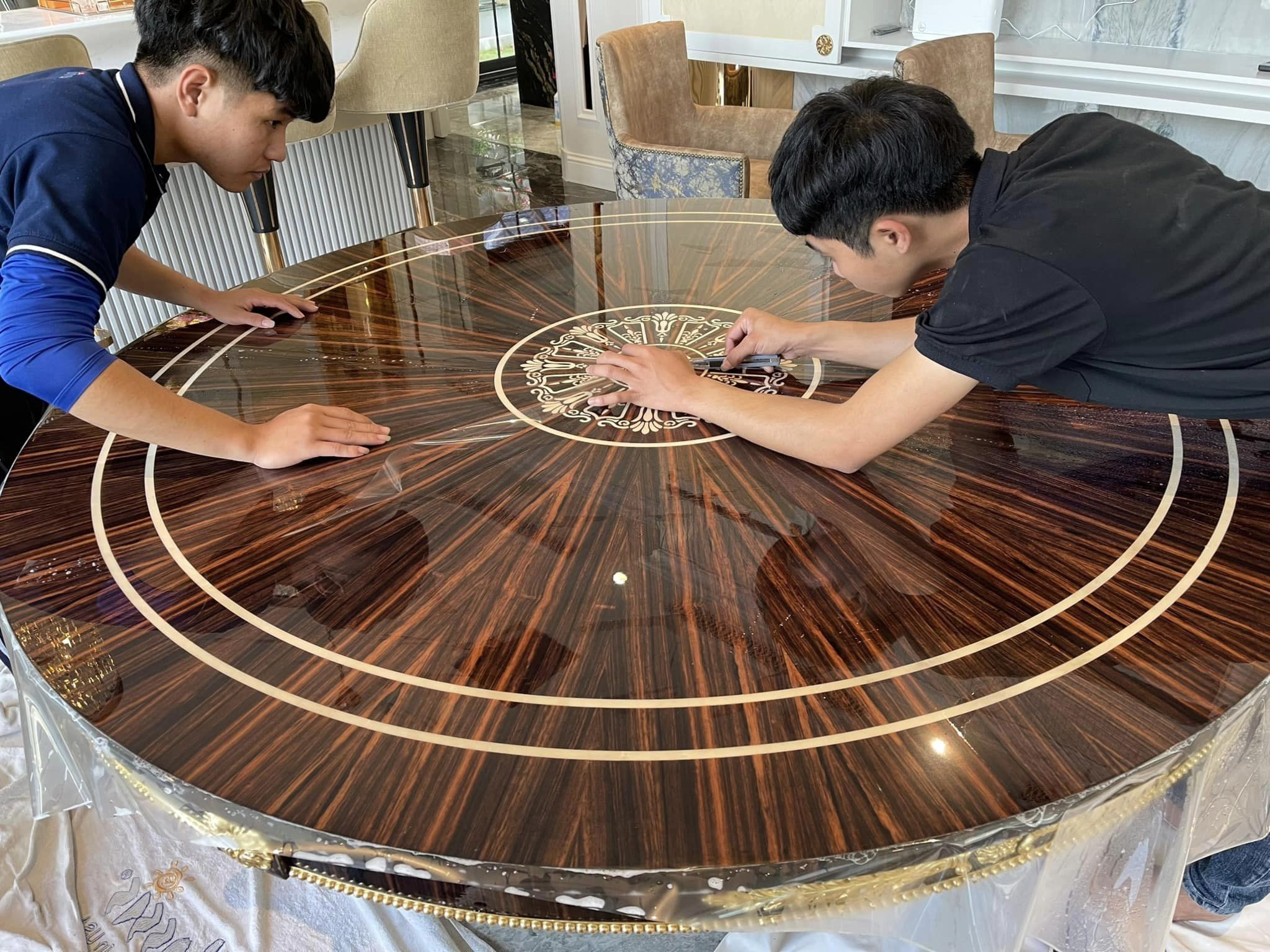 Ngoài ra, nó còn giúp bề mặt sáng bóng và các chi tiết hoa văn nổi bật hơn. Dán phim bảo vệ mặt bàn còn có khả năng bảo vệ cực tốt so với nhiều loại vật liệu thông thường, giúp tránh khỏi các tác động gây trầy xước, ố bẩn cho bề mặt nội thất.