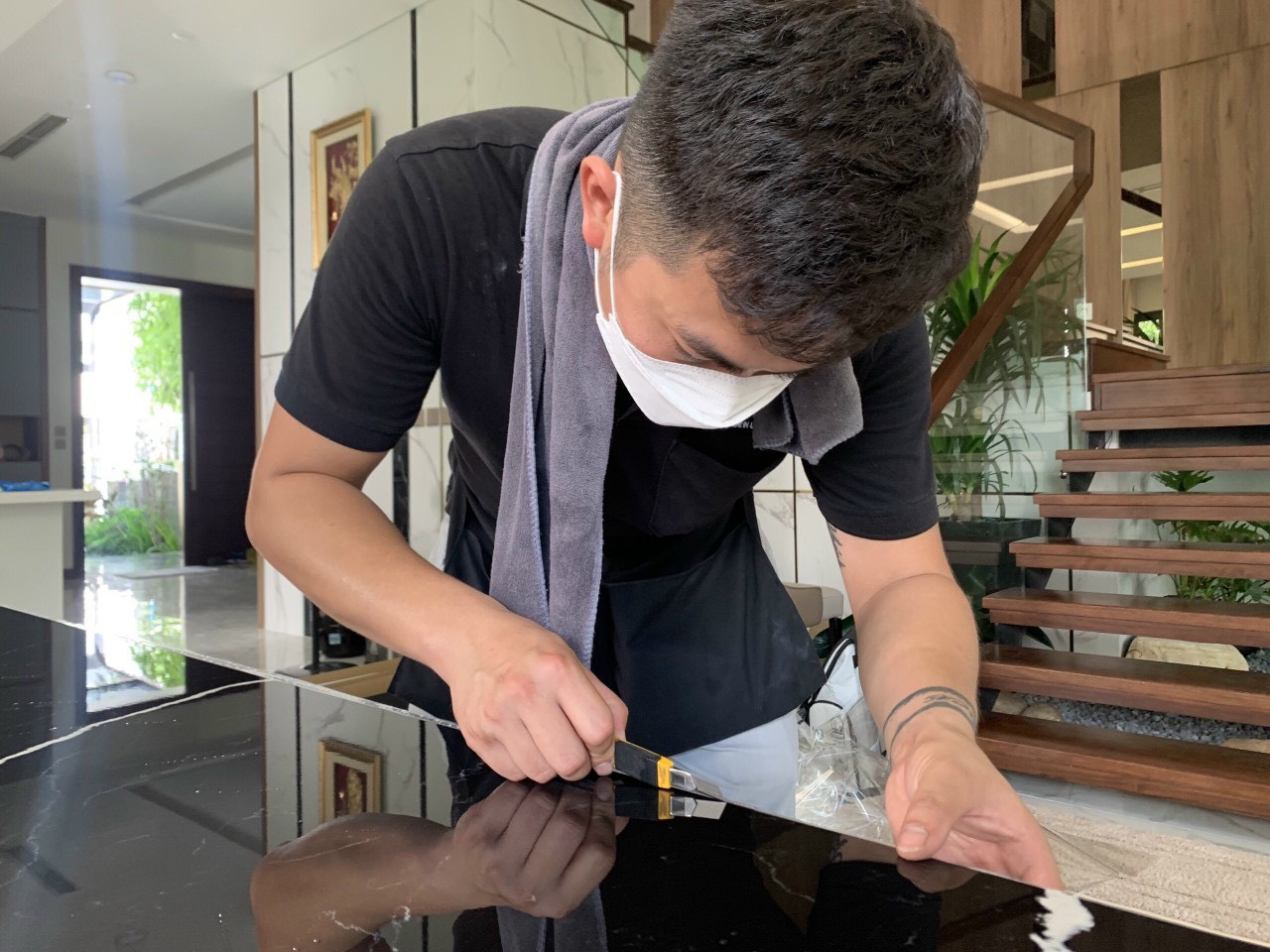 Bằng cách dán phim bảo vệ mặt bàn cho các loại mặt bàn gỗ và đá của gia đình thì sẽ giúp cho chúng được bảo vệ an toàn như mới trong suốt thời gian sử dụng dài.