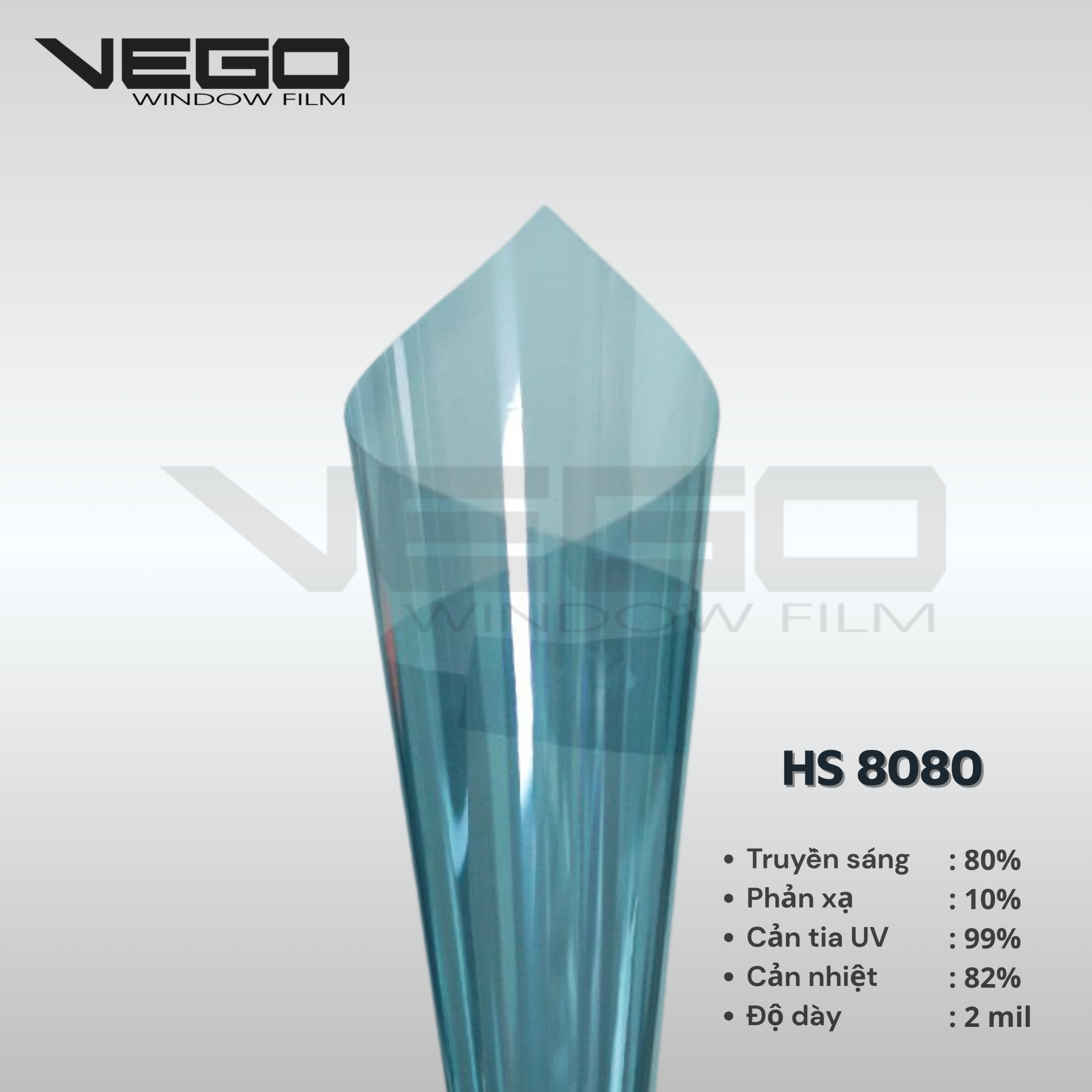Phim cách nhiệt HS8080 với khả năng truyền sáng cao, gần như không đổi màu kính nên sản phẩm thích hợp dành cho kính lái xe ô tô. Chỉ sổ cản tia hồng ngoại IR lên tới 80% (là chùm tia mang nhiều nhiệt nhất trong ánh sáng mặt trời) nên khả năng cản nhiệt của film thuộc top đầu trong các sản phẩm của Vego Window Film.